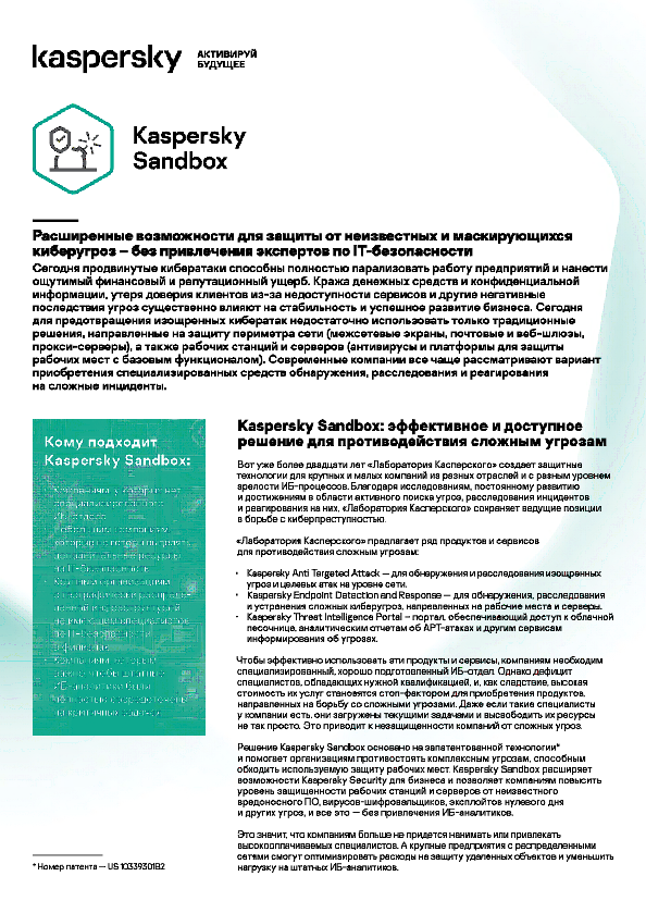 Kaspersky Expert Security – экспертное предложение для средних и крупных организаций со зрелой ИБ-экспертизой, которое помогает эффективно противостоять всему спектру современных сложных угроз, APT-подобных и целевых атак. У ИБ-экспертов теперь есть всё необходимое, чтобы отражать кибератаки любого масштаба и сложности: технологии мирового уровня, оперативные и достоверные данные об угрозах, экспертные знания и всесторонняя поддержка со стороны «Лаборатории Касперского».
